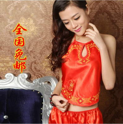 Bà người lớn thêu thêu cổ điển màu đỏ tạp dề Lễ hội đám cưới đồ ngủ đôi Bellyband