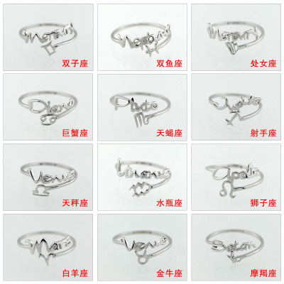 Bạc sterling 925 mở mười hai chòm sao đôi nữ nhẫn phiên bản Hàn Quốc của ngón trỏ nhẫn điều chỉnh kích thước nhẫn nhan kim cuong Nhẫn
