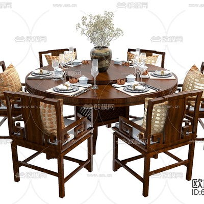 Bàn ăn gỗ nguyên khối kiểu Trung Quốc mới hiện đại kết hợp bàn ăn tối giản và ghế kết hợp Bàn tròn khách sạn nội thất câu lạc bộ 681619 - Nội thất văn phòng tủ hồ sơ gỗ Nội thất văn phòng