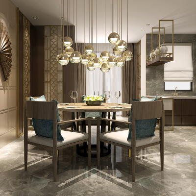 Bàn ăn và ghế đại dương kết hợp một bàn sáu ghế mới Trung Quốc tro tròn bàn hoàn chỉnh đặt nhà hàng gỗ và bàn ghế gỗ kệ trang trí phòng khách