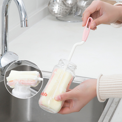 Bàn chải chai bọt biển dài tay cầm chai bàn chải cốc tạo tác cốc nước bàn chải núm vú bàn chải làm sạch bàn chải nhỏ xoay bàn chải - Thức ăn-chai và các mặt hàng tương đối bình sữa cho bé sơ sinh