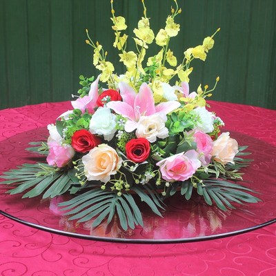 Bàn khách sạn hoa bàn tròn trang trí hoa bàn tròn bàn xoay hoa tròn giả hoa trang trí bàn hoa mô phỏng bó hoa - Hoa nhân tạo / Cây / Trái cây hoa hồng giả đẹp