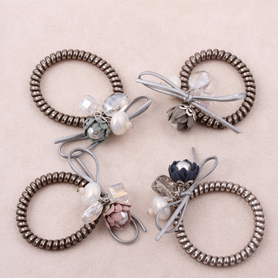 Ban nhạc cao su Hàn Quốc vòng tóc thời trang hoa ngọc trai handmade dòng điện thoại dây nhỏ tươi nơ thắt đuôi ngựa - Phụ kiện tóc kẹp tóc Phụ kiện tóc