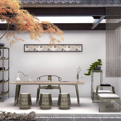 Bàn trà đạo Trung Quốc và ghế mới kết hợp giữa bàn trà phòng trà nội thất văn phòng sang trọng nhẹ bàn cà phê cổ kung fu tối giản hiện đại - Bàn trà bàn trà tròn mặt đá Bàn trà