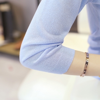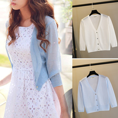 Băng lụa siêu mỏng mùa hè bên ngoài áo len dệt kim bảy điểm tay áo nữ cổ chữ v điều hòa không khí áo choàng khăn choàng đoạn ngắn áo kiểu nữ đẹp tuổi 40