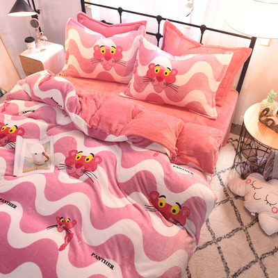 Báo đốm dày Falais bốn bộ san hô với nhung ấm 1,8m giường 2 m x2.3 chăn 2.2x2.4 mùa đông chăn ga gối đệm cưới