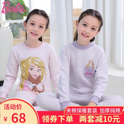Barbie trẻ em đồ lót nhiệt bộ bông dày ba lớp cổ áo cô gái quần áo mùa thu quần cotton trẻ em lớn quần áo cho bé trai