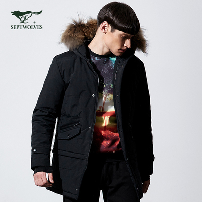 Bảy con sói bông quần áo thể thao ngoài trời mùa đông thời trang giản dị mới phần dài các tính năng dày ấm bông áo áo phao ấm