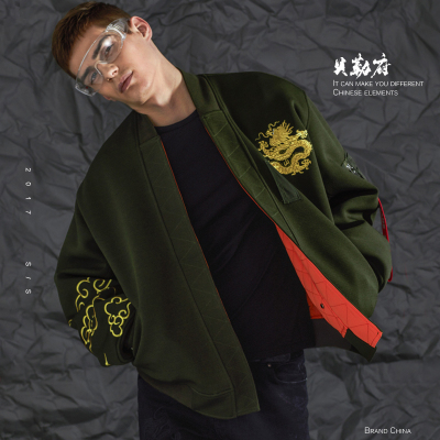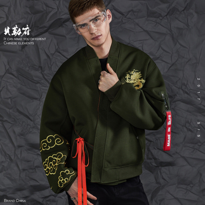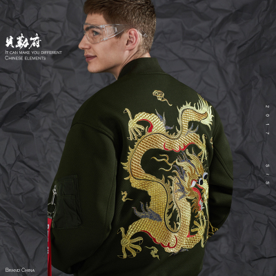 Baylor House Phong cách Trung Quốc áo bông thêu Jinlong quân đội bông xanh quần áo áo khoác nam xu hướng áo khoác nam giản dị lỏng lẻo - Bông áo dạ nam hàn quốc