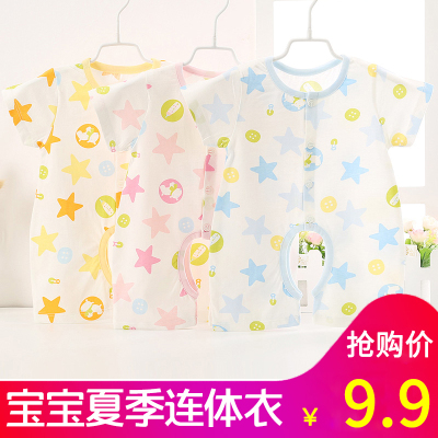 Bé Ha Yi Mùa Hè Ngắn Tay Áo Bông Cardigan Mỏng 0-1 Năm Cũ Bé Nửa Tay Áo Một Mảnh Cardigan Đồ Ngủ Nam Giới và phụ nữ bộ body bé trai Áo liền quần