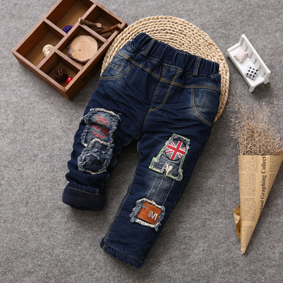 Bé trai mặc quần jean nhung dày cho bé mùa đông cộng với quần cotton trẻ em quần ấm 1-2-3-4-5 tuổi quần bò lót lông cho bé Quần jean