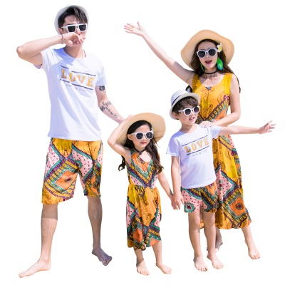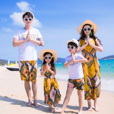 Beach Family Pack Summer 2018 New Mother and D daughter Beach Dress Father and Son Cotton Set Family Three Family Resort quần legging bé gái
