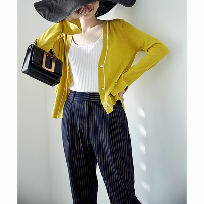 Belle Garden Tương Phản V-Cổ Ngọc Trai Khóa Đôi Pocket Nền Tảng Lụa Hoang Dã Cashmere Knit Cardigan 18 Mùa Thu áo khoác cardigan nữ Cardigan