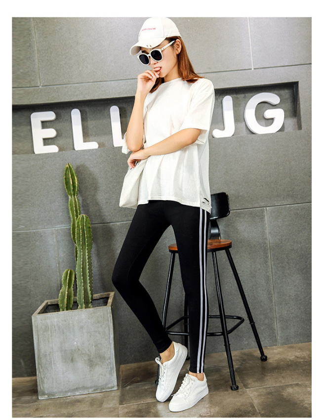 Bên trắng dải quần legging modal nữ mùa thu mỏng kéo dài kích thước lớn bó sát thể thao chín điểm song song thanh chân quần quần lót lông nữ
