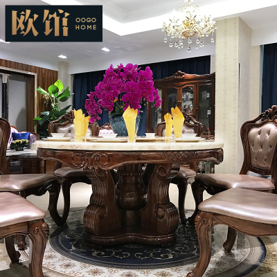 Biệt thự bàn ăn tròn châu Âu Bàn ăn bằng đá cẩm thạch tự nhiên Wujinmu Bàn xoay tròn 6 người nội thất nhà hàng giường gỗ đẹp Bộ đồ nội thất