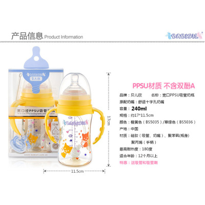 Bình sữa trẻ em Belle Xin có đường kính rộng PPSU Chai rơm tự động Uống sữa cầm tay thả - Thức ăn-chai và các mặt hàng tương đối bình sữa nuk Thức ăn-chai và các mặt hàng tương đối