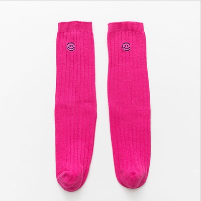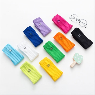 Bít tất cho trẻ em 2019 Mùa xuân và mùa thu Cotton mới Smiley Solid Color High Vớ Bé trai và bé gái Quần dài ống dài đến đầu gối Vớ thẳng - Vớ quần tất da chân dày đẹp cho bé gái