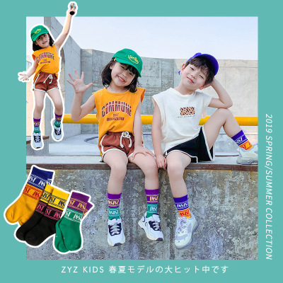 Bít tất trẻ em đường phố vớ trẻ em màu hè chữ cotton cotton thể thao cho trẻ em 3 đôi - Vớ thời trang cho bé