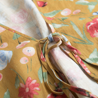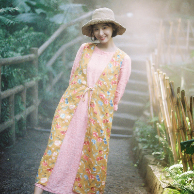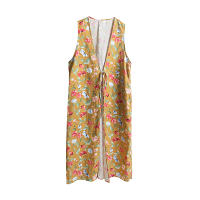 Blooming C183 hoa 2018 mới gừng vàng V-cổ tie in dài vest áo khoác nữ cao cấp