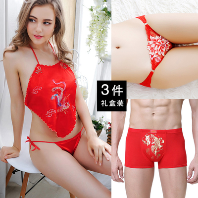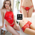 Bộ 3 mảnh năm sinh tạp dề nữ trưởng thành cặp đôi đồ lót màu đỏ cô dâu cổ điển ren phượng bộ đồ lót đồ lót nữ
