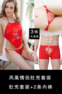 Bộ 3 mảnh năm sinh tạp dề nữ trưởng thành cặp đôi đồ lót màu đỏ cô dâu cổ điển ren phượng bộ đồ lót đồ lót nữ Bellyband