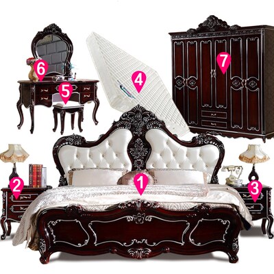 Bộ bộ bàn ghế phòng ngủ phòng ngủ chính phòng ngủ đầy đủ bộ phong cách châu Âu kết hợp tủ quần áo đầy đủ nhà ở Mỹ Giường ngủ tối màu sáu bộ kệ phòng khách Bộ đồ nội thất