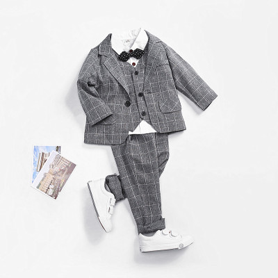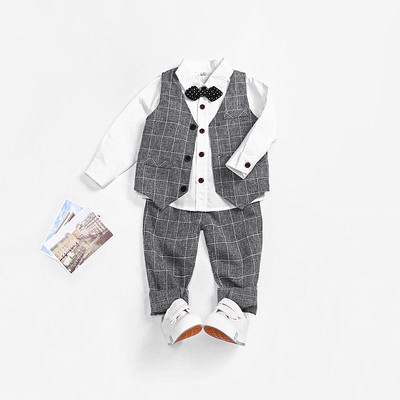 Bộ đồ bé trai phù hợp với trẻ em hoa cô gái ăn mặc trang phục bé trai bộ đồ nhỏ ba mảnh đẹp trai mùa thu thủy triều áo gile đồ vest bé trai