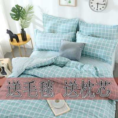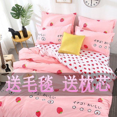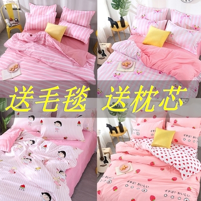 Bộ đồ giường lưới màu đỏ gồm bốn bộ 1,8 cô gái trái tim màu hồng ký túc xá sinh viên trải chăn ba bộ 1,5m mền gối Bộ đồ giường bốn mảnh