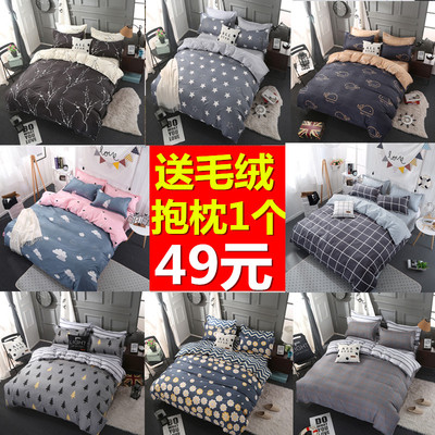 Bộ đồ giường một gia đình bốn màu đỏ đôi ròng 1.5 / 1.8m khăn trải giường chăn người đặc biệt ký túc xá 1,2m ba mảnh 4 - Bộ đồ giường bốn mảnh chăn ga gối forever