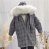 Bộ đồ len kẻ sọc cotton dài phần 2018 mùa đông phiên bản mới của Hàn Quốc áo rộng cổ lông rộng làm dày áo khoác eo áo dạ nữ trung niên đẹp Áo Hàn Quốc