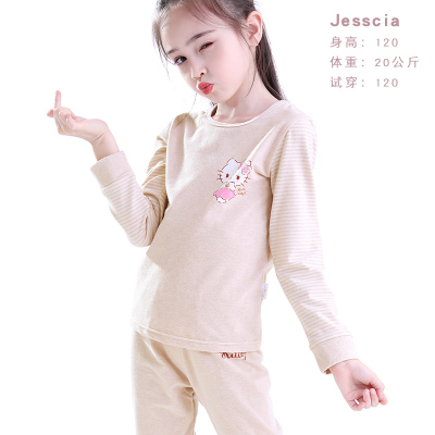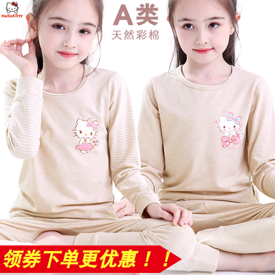Bộ đồ lót Hello Kitty cho bé gái Bộ đồ ngủ bằng vải cotton cho bé gái Đồ ngủ bé gái Quần áo trẻ em mùa thu KT Cat - Quần áo lót quần áo lót bé gái cao cấp