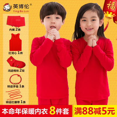 Bộ đồ lót nhiệt cho trẻ em Inbolon màu đỏ lớn tuổi thọ lợn 12 tuổi Cậu bé bông lớn quần áo mùa thu quần lót trẻ em