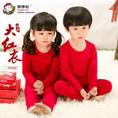 Bộ đồ lót suốt đời cho trẻ em InBollen để giữ ấm cho bé gái lớn trẻ em cotton màu đỏ mùa thu quần áo bé trai kinh doanh quần áo trẻ em