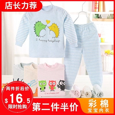 Bộ đồ lót trẻ em cotton 2019 mới 1-5 tuổi Bộ quần áo mùa thu khóa vai cho bé Bộ quần áo cotton màu - Quần áo lót bộ đồ lót trẻ em Quần áo lót