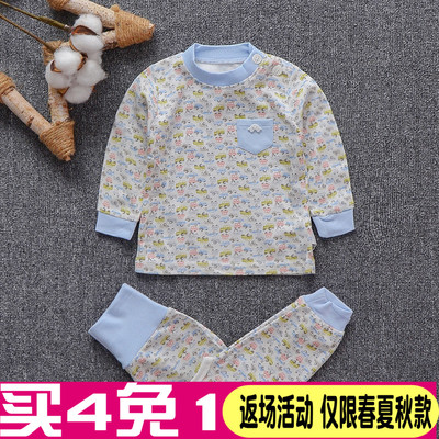 Bộ đồ lót trẻ em quần áo mùa xuân và mùa thu nữ bé cotton và vải lanh dài tay quần áo mùa thu quần dài hai mảnh nam đồ lót trẻ em mùa đông đồ bộ cho bé trai