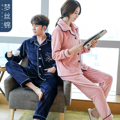 Bộ đồ ngủ bằng vải nhung san hô cho nam mùa thu đông bộ mặc nhà đẹp Cặp đôi