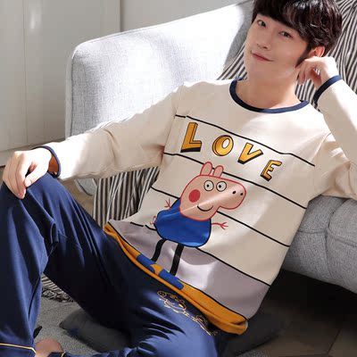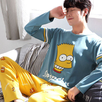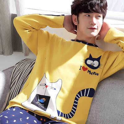 Bộ đồ ngủ nam mùa thu và mùa đông cotton dài tay mỏng phần giản dị Hàn Quốc phù hợp với tuổi 12-18 tuổi đồ lửng mặc nhà Nam giới