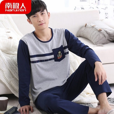 Bộ đồ ngủ nam ở Nam Cực mùa thu cotton dài tay giản dị phiên bản Hàn Quốc hình ảnh đồ bộ kiểu