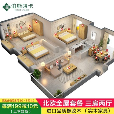Bộ đồ nội thất toàn bộ nhà kết hợp Bắc Âu Tất cả đồ gỗ rắn Giường đôi kết hợp tủ quần áo bộ bàn ghế phòng ngủ Bộ đồ nội thất