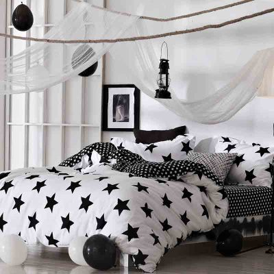Bộ đồ sọc kẻ sọc trắng đen đơn giản và tinh khiết gồm bốn bộ bộ đồ giường lớn châu Âu và Mỹ ba bộ đồ dệt gia đình mùa xuân và mùa hè chăn ga gối đệm cute