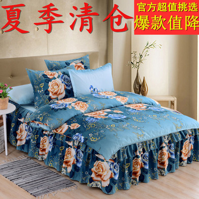 Bộ đồ trải giường bằng vải cotton Hàn Quốc trải giường bốn mảnh bằng vải cotton đôi 1.5 1.5m trải giường chăn ga gối đệm cute
