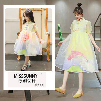 Bộ váy công chúa mẹ-con nguyên bản 2019 hè mới phong cách trẻ em vui nhộn in lưới váy đầm xòe - Trang phục dành cho cha mẹ và con váy đẹp mẹ và bé Trang phục dành cho cha mẹ và con