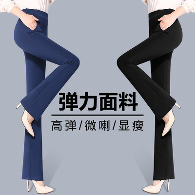 Bốn chiều co giãn mùa thu và mùa đông kích thước lớn quần mẹ chuông siêu dày cộng với nhung đáy quần cao eo thẳng quần nữ áo thun trắng nữ