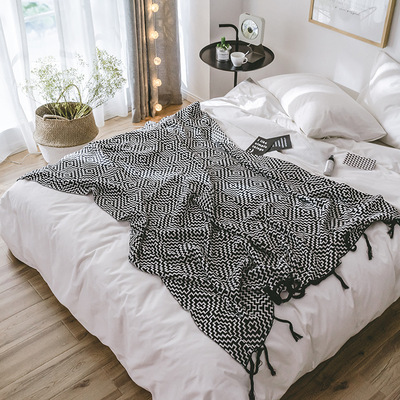 Bông đan tua chăn mền chăn mền thường màu đen và màu trắng hình học Bắc Âu mô hình phòng cuối giường chăn đi xe thảm đi xe khăn - Ném / Chăn chăn lông cừu queen Ném / Chăn
