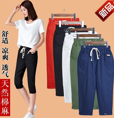 Bông và vải lanh cắt quần nữ mùa hè quần âu quần lỏng quần cà rốt nữ sinh viên quần harem cắt quần triều hoang dã nữ thời trang nữ đẹp