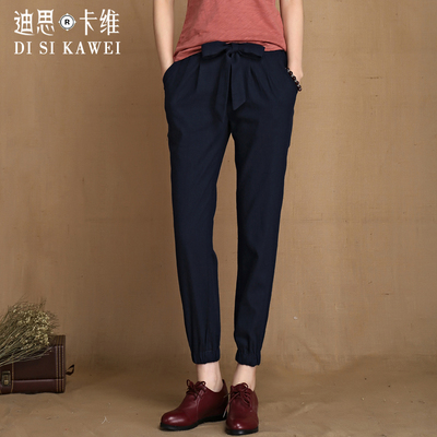 Bông và vải lanh quần nữ mô hình bàn chân nhỏ quần hậu cung của phụ nữ quần âu phần mỏng đàn hồi eo linen cao eo chín quần phụ nữ mùa hè quần harem hàn quốc phong cách