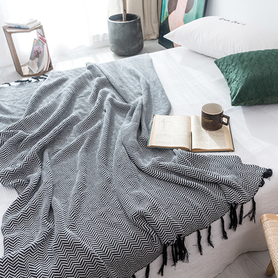 Bowen thợ nhuộm đen tối giản Bắc Âu và mô hình sóng hình học tua tấm thảm trắng giản dị đi chăn giường điều hòa không khí chăn - Ném / Chăn chăn nhung tuyết muji Ném / Chăn