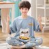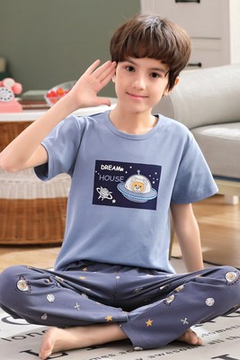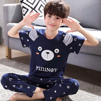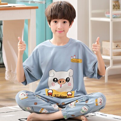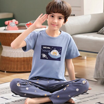 Boy con bộ đồ ngủ bé trai mùa hè ngắn tay quần cotton phần mỏng lớn Tong Chunqiu bông tracksuit phù hợp đồ bơi trẻ em quần rời Phù hợp với trẻ em