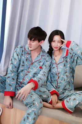 Bunny cotton vài bộ đồ ngủ mùa xuân và mùa thu nhà dịch vụ phù hợp với áo len dài tay Hàn Quốc phim hoạt hình nam nữ phù hợp với hai mảnh đồ bộ thun lạnh Cặp đôi