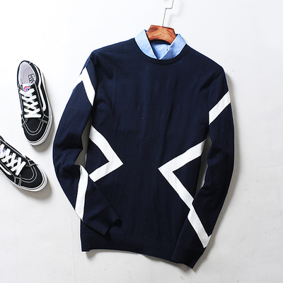 C496 quạt thủy triều truy cập hàng hóa len len cổ tròn áo len nam thanh niên hình học sọc áo len nam áo khoác lông cừu nam Áo len